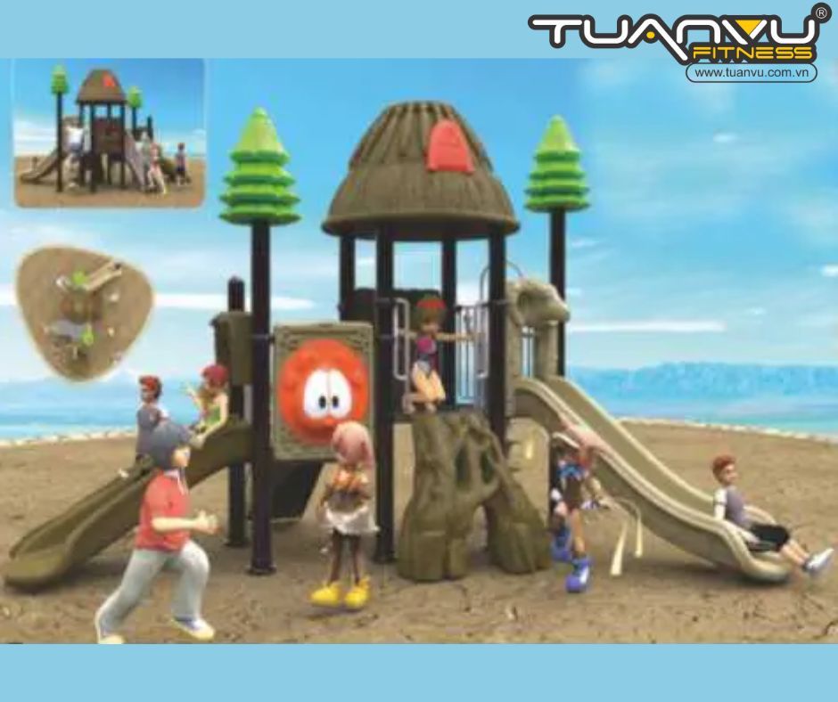 Sân chơi trẻ em theo chủ đề nhà trên cây này được thiết kế cho trẻ em từ 3 đến 12 tuổi. Tất cả các trò chơi đều có chiều cao vừa phải, vì vậy phụ huynh có thể hỗ trợ con mình khi chơi.