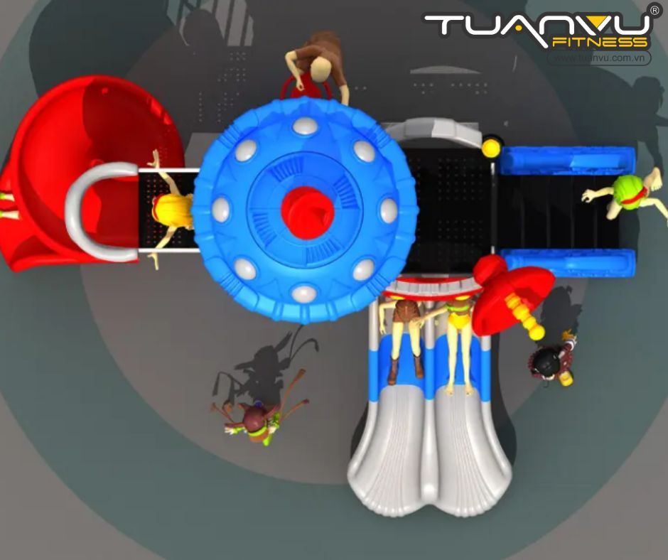 Cầu trượt xoắn ốc mở: Khi nhìn xuống toàn bộ cầu trượt, thiết kế xoắn ốc trông thật bí ẩn và đầy thử thách. Ở đoạn nước rút cuối cùng, các bé sẽ đáp xuống đất nhanh chóng như một thiên thạch nhỏ. Cầu trượt đôi là một cầu trượt tương tác thú vị, nơi các bé có thể chia sẻ những khoảnh khắc vui vẻ với bạn bè. Dù trượt xuống cùng lúc hay cạnh tranh với nhau, các bé đều có thể học cách giao tiếp và nhường nhịn nhau trong khi vui chơi.